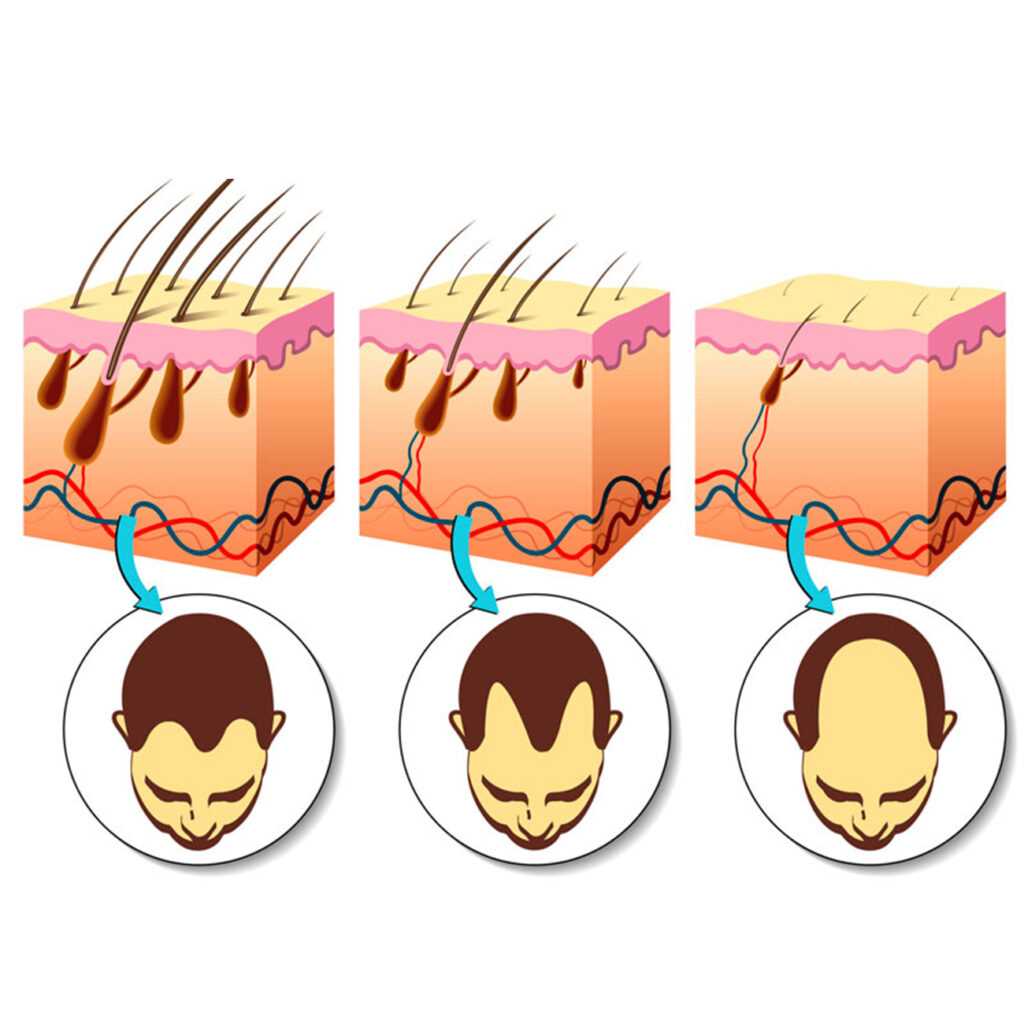 Diferente da queda de cabelo temporária, como acontece no estresse ou após doenças, a calvície masculina segue um padrão definido, associado à sensibilidade dos folículos pilosos à ação de hormônios.